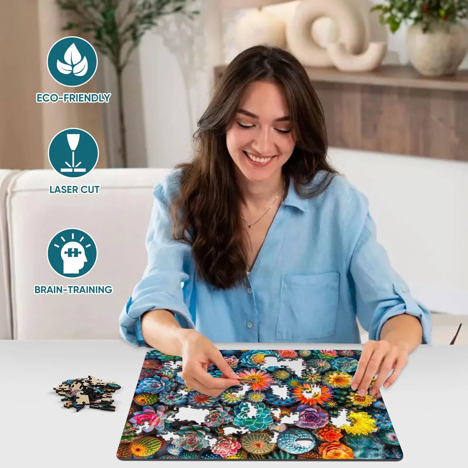 The puzzle is inspired by nature, colorful, unique wooden puzzle. Original and vivid hand-painted art, which is fascinating and worthy of being used as an aesthetic home decoration. Mysterious patterns and small pieces of east eggs give you the ultimate puzzle experience.