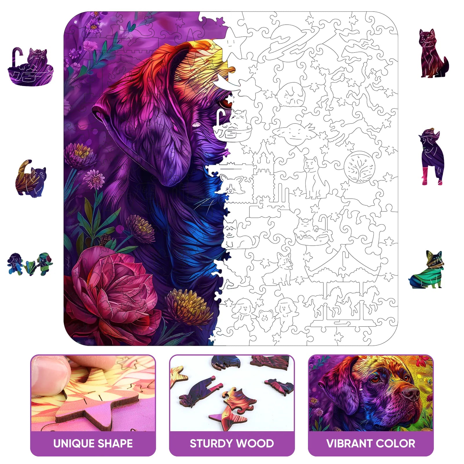 The puzzle is inspired by nature, colorful, unique wooden puzzle. Original and vivid hand-painted art, which is fascinating and worthy of being used as an aesthetic home decoration. Mysterious patterns and small pieces of east eggs give you the ultimate puzzle experience.