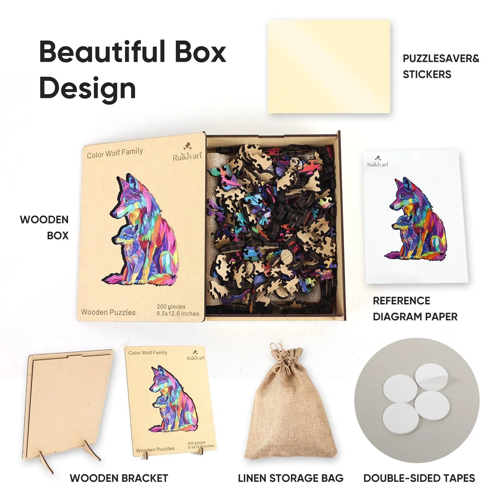The puzzle is inspired by nature, colorful, unique wooden puzzle. Original and vivid hand-painted art, which is fascinating and worthy of being used as an aesthetic home decoration. Mysterious patterns and small pieces of east eggs give you the ultimate puzzle experience.