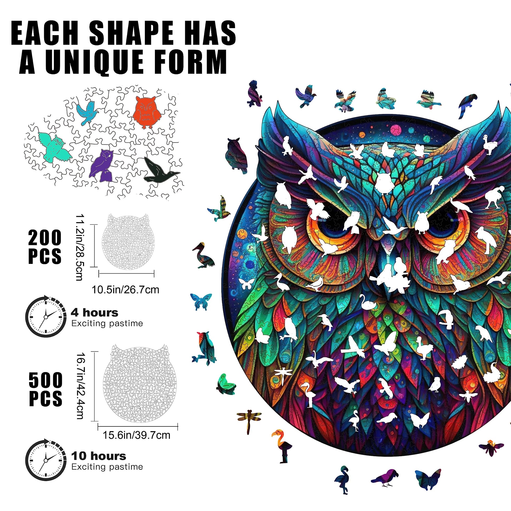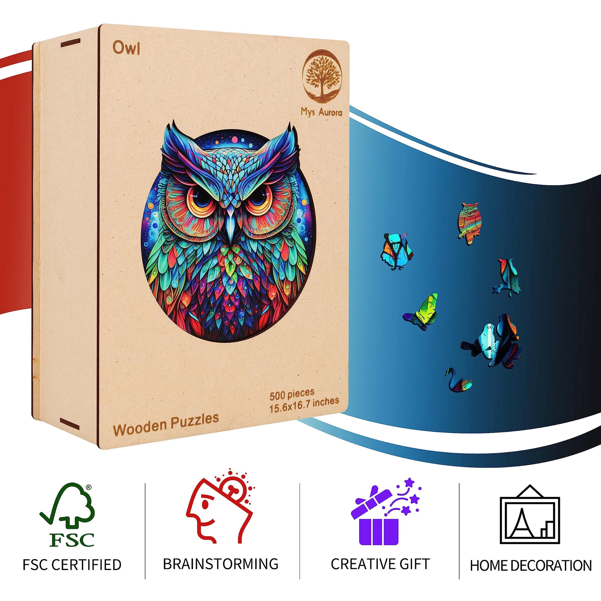 The puzzle is inspired by nature, colorful, unique wooden puzzle. Original and vivid hand-painted art, which is fascinating and worthy of being used as an aesthetic home decoration. Mysterious patterns and small pieces of east eggs give you the ultimate puzzle experience.