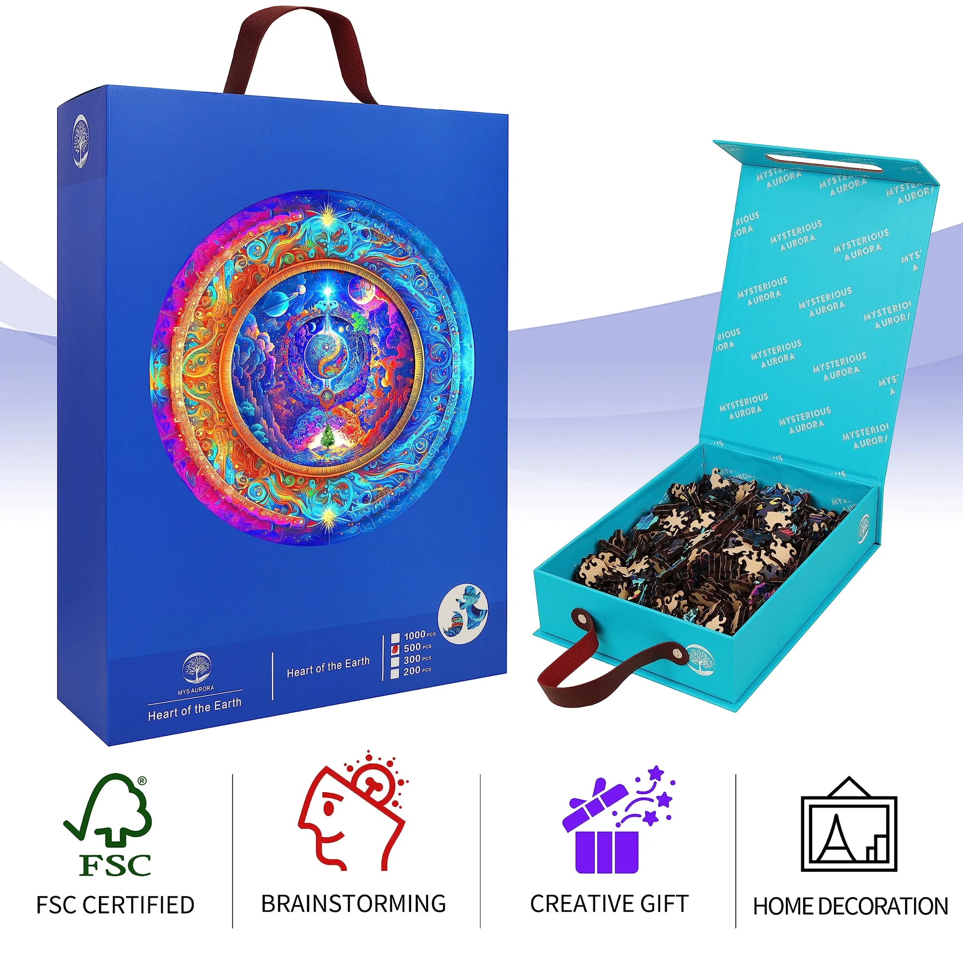 The puzzle is inspired by nature, colorful, unique wooden puzzle. Original and vivid hand-painted art, which is fascinating and worthy of being used as an aesthetic home decoration. Mysterious patterns and small pieces of east eggs give you the ultimate puzzle experience.