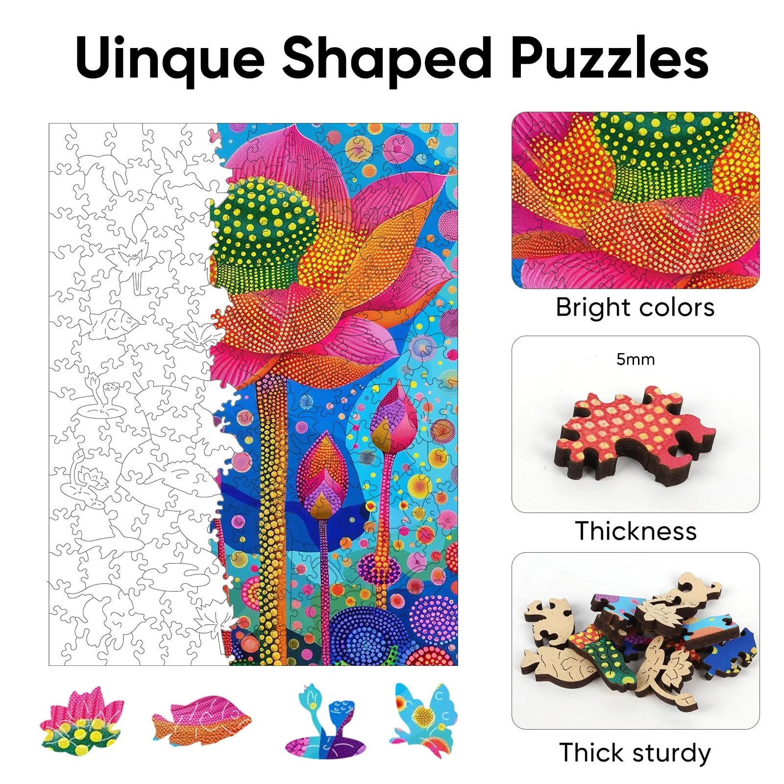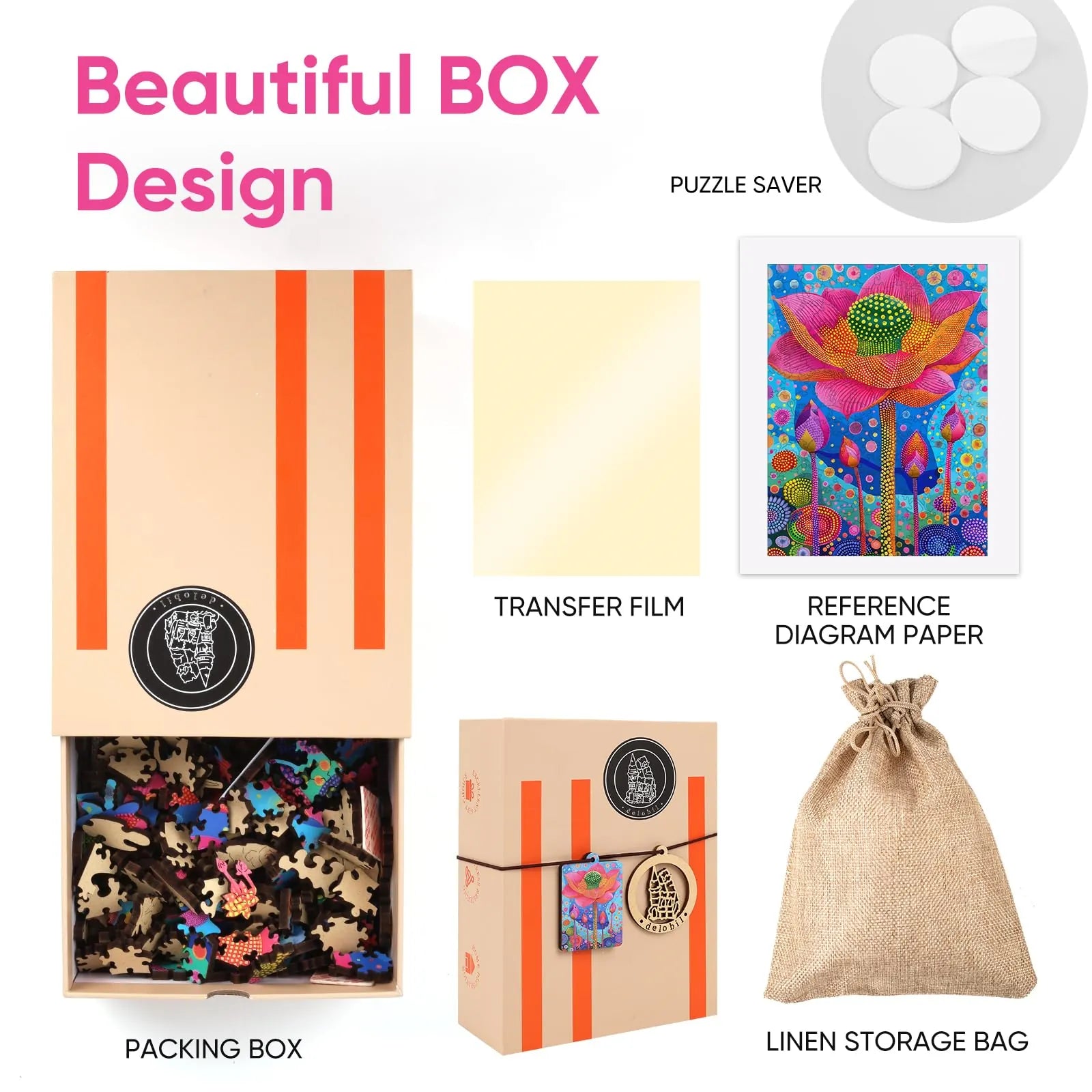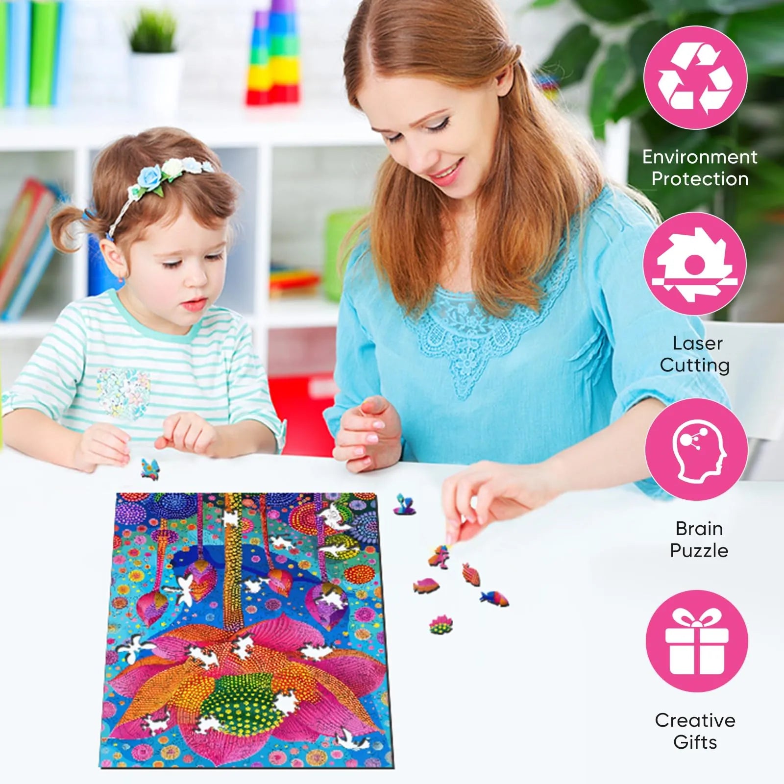 The puzzle is inspired by nature, colorful, unique wooden puzzle. Original and vivid hand-painted art, which is fascinating and worthy of being used as an aesthetic home decoration. Mysterious patterns and small pieces of east eggs give you the ultimate puzzle experience.