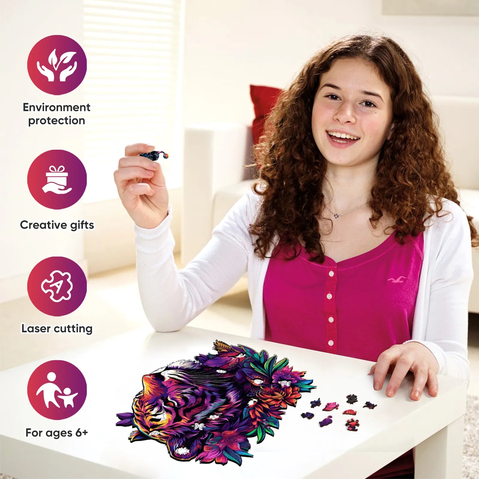 The puzzle is inspired by nature, colorful, unique wooden puzzle. Original and vivid hand-painted art, which is fascinating and worthy of being used as an aesthetic home decoration. Mysterious patterns and small pieces of east eggs give you the ultimate puzzle experience.