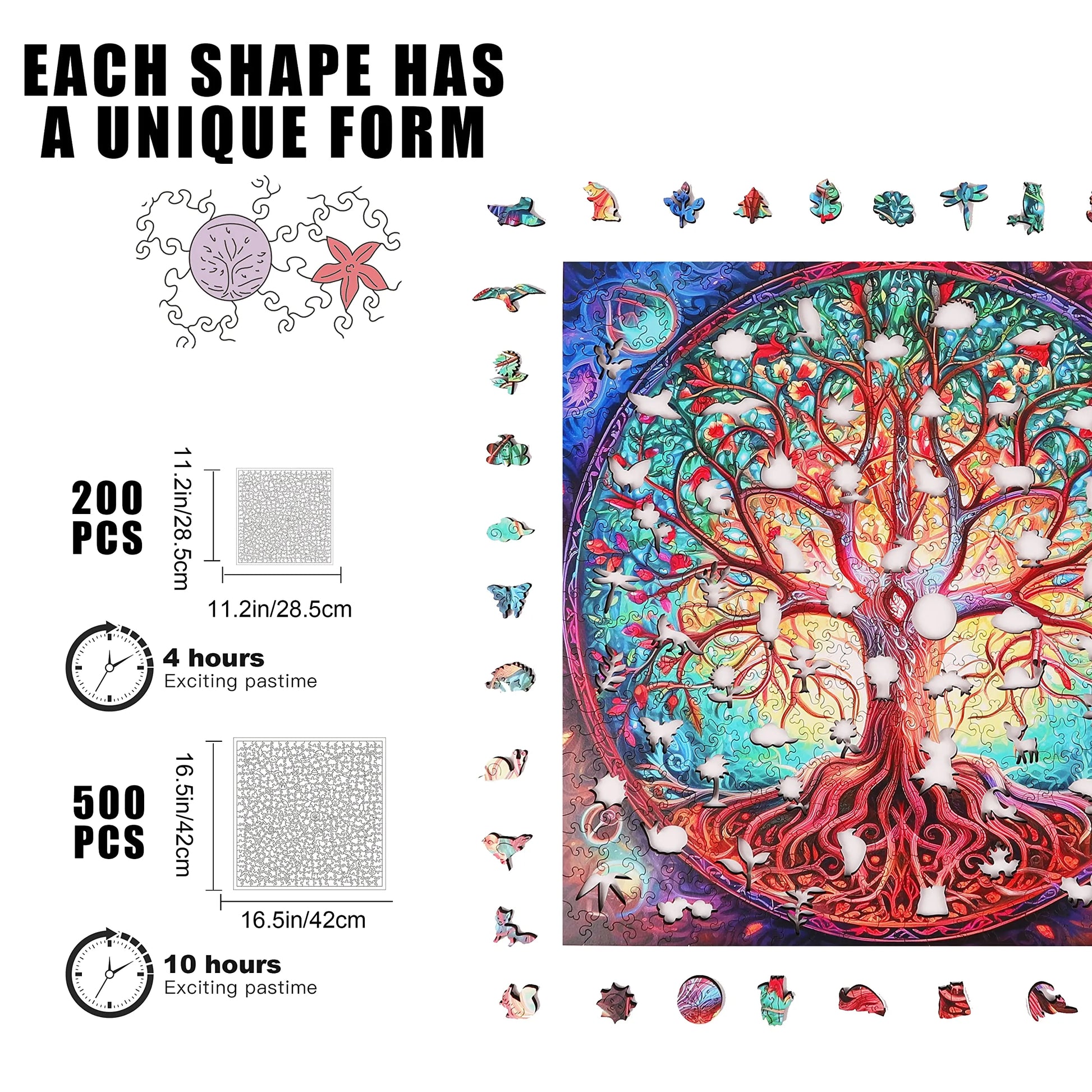The puzzle is inspired by nature, colorful, unique wooden puzzle. Original and vivid hand-painted art, which is fascinating and worthy of being used as an aesthetic home decoration. Mysterious patterns and small pieces of east eggs give you the ultimate puzzle experience.