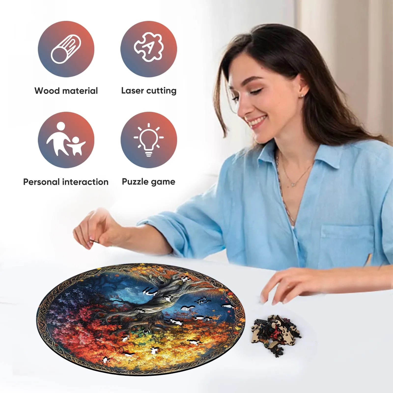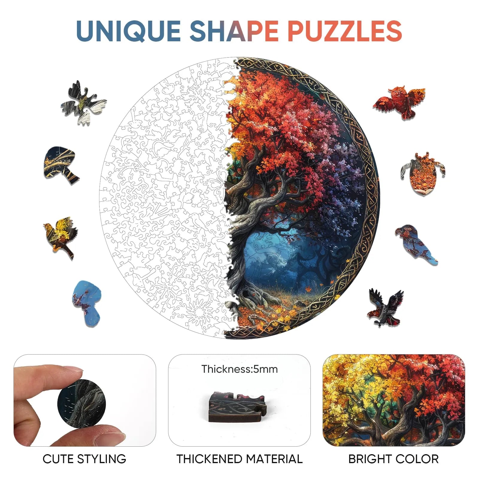 The puzzle is inspired by nature, colorful, unique wooden puzzle. Original and vivid hand-painted art, which is fascinating and worthy of being used as an aesthetic home decoration. Mysterious patterns and small pieces of east eggs give you the ultimate puzzle experience.