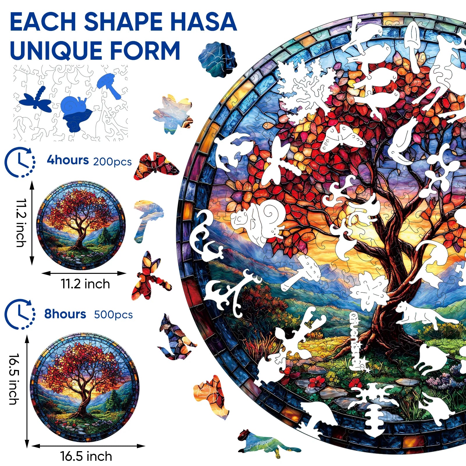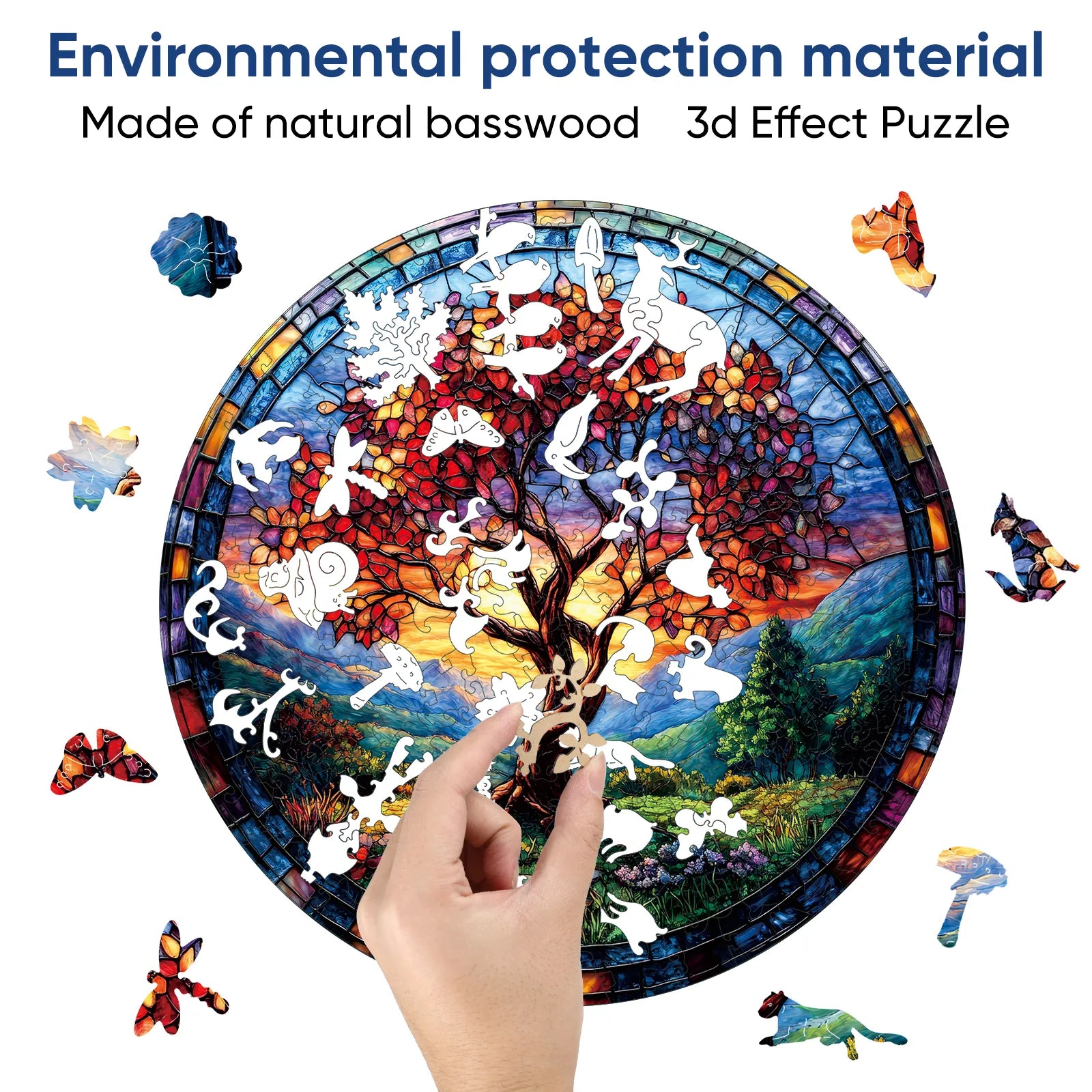 The puzzle is inspired by nature, colorful, unique wooden puzzle. Original and vivid hand-painted art, which is fascinating and worthy of being used as an aesthetic home decoration. Mysterious patterns and small pieces of east eggs give you the ultimate puzzle experience.