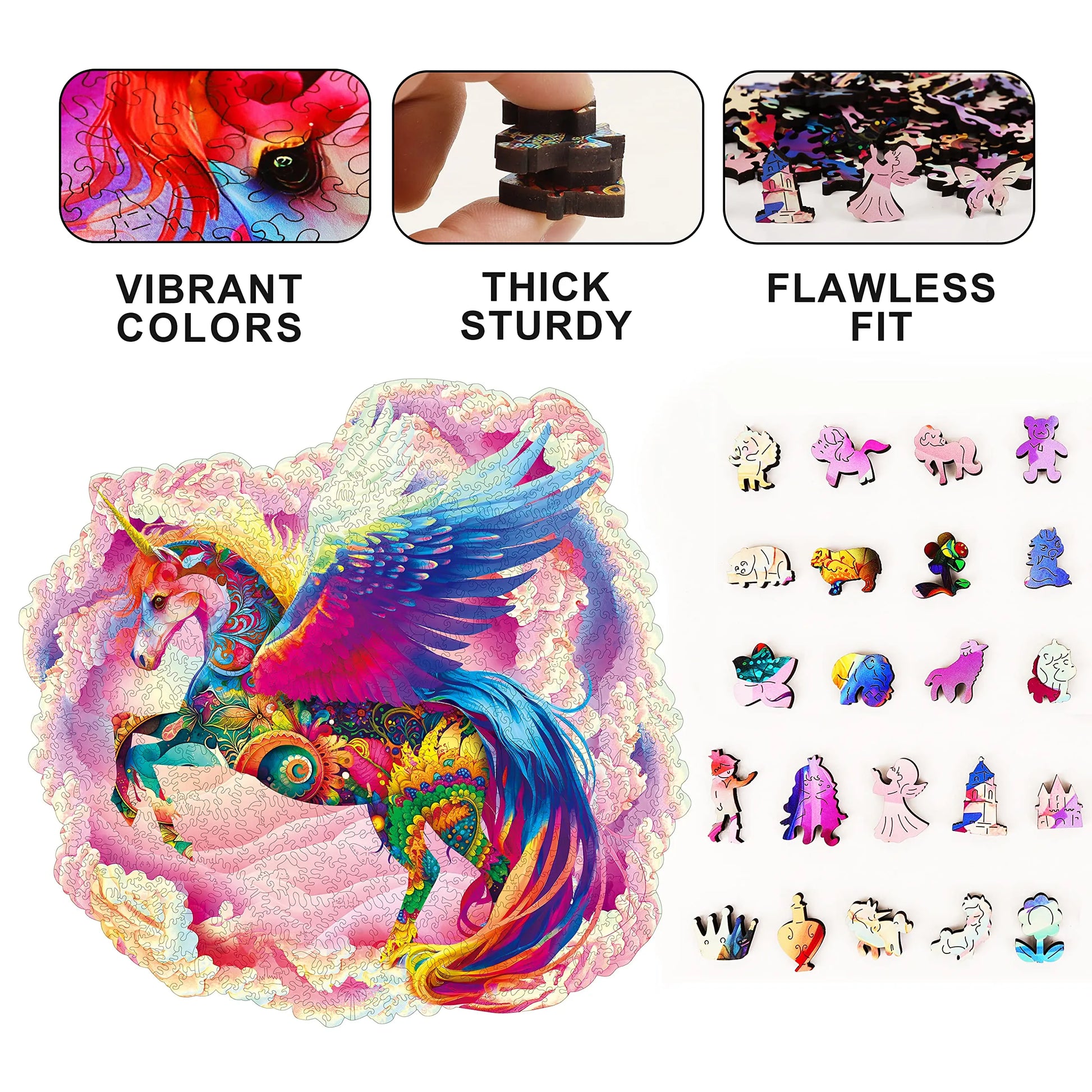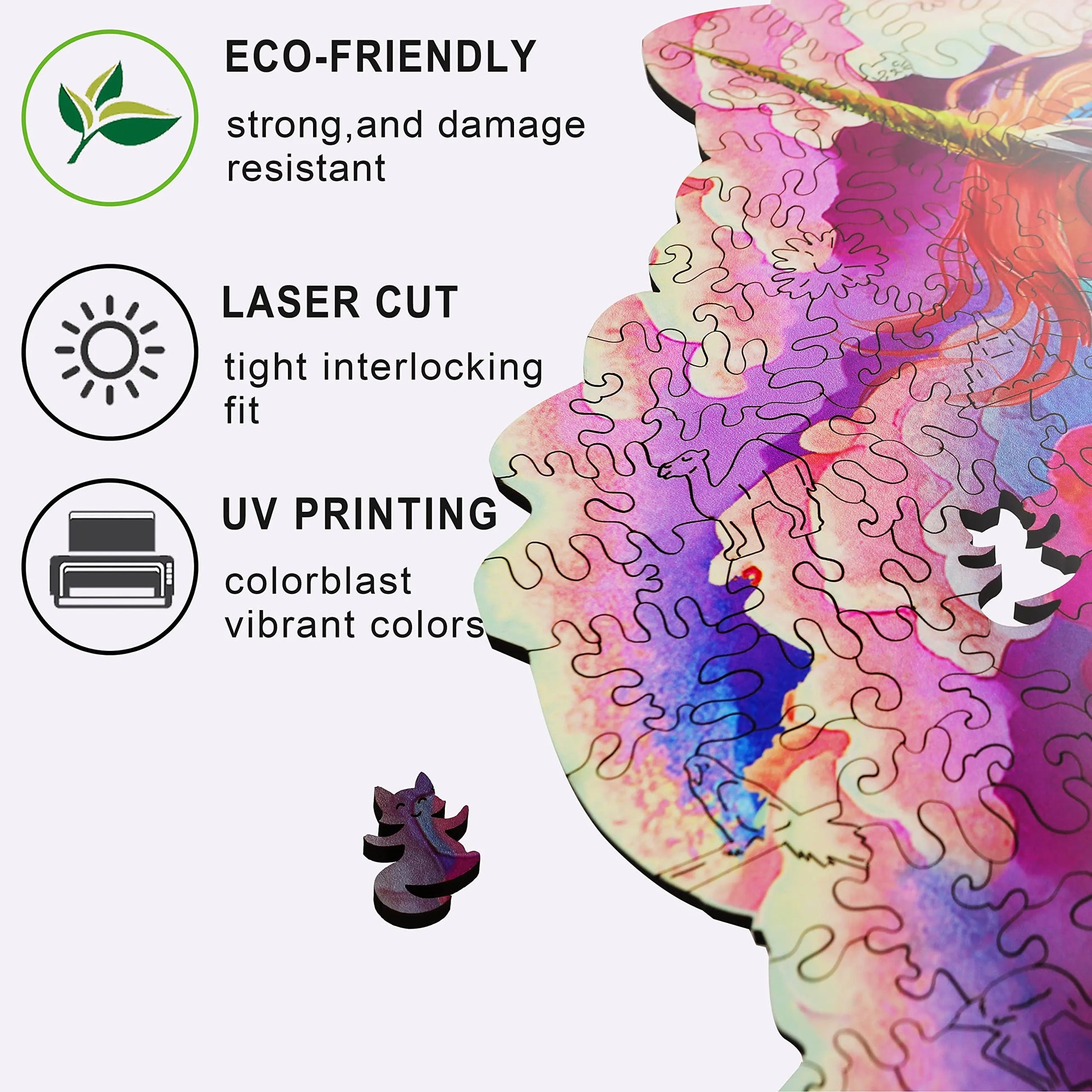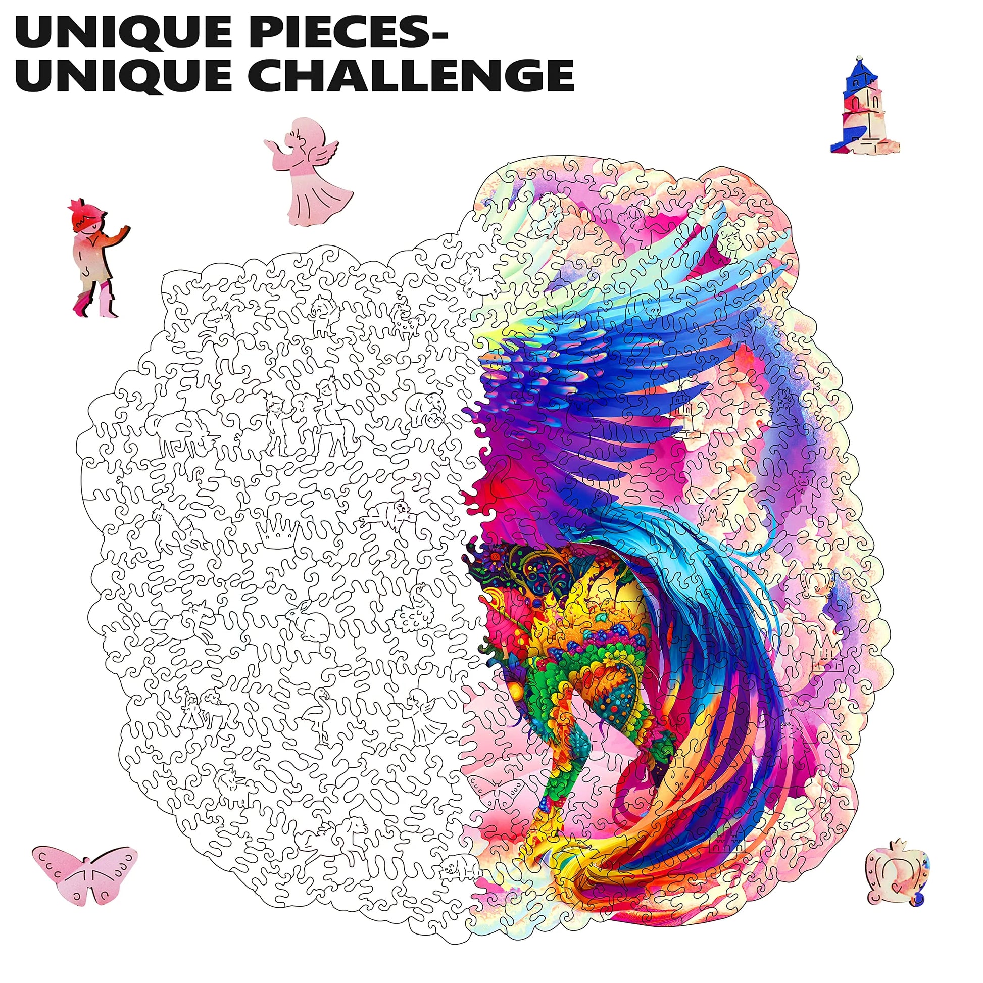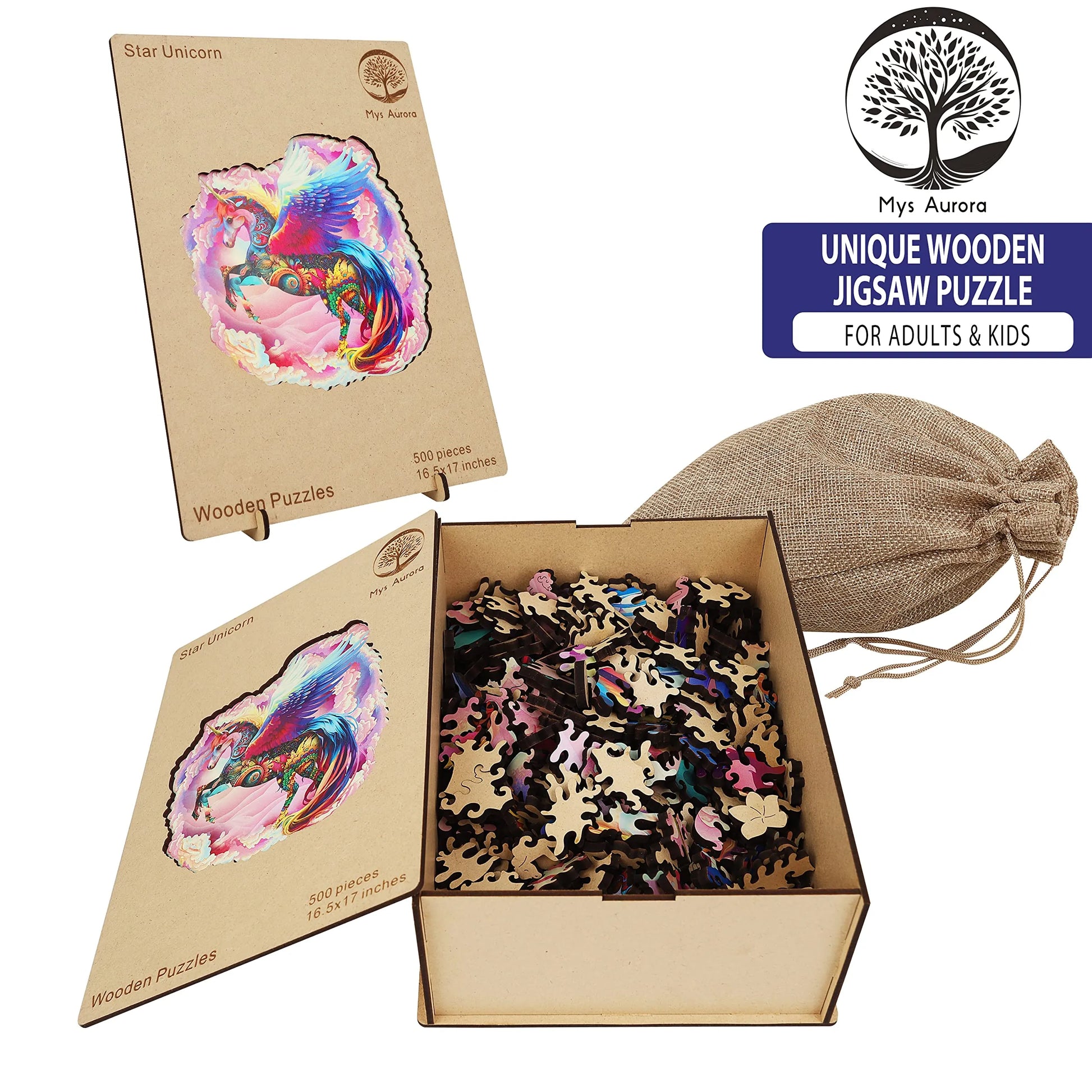 The puzzle is inspired by nature, colorful, unique wooden puzzle. Original and vivid hand-painted art, which is fascinating and worthy of being used as an aesthetic home decoration. Mysterious patterns and small pieces of east eggs give you the ultimate puzzle experience.