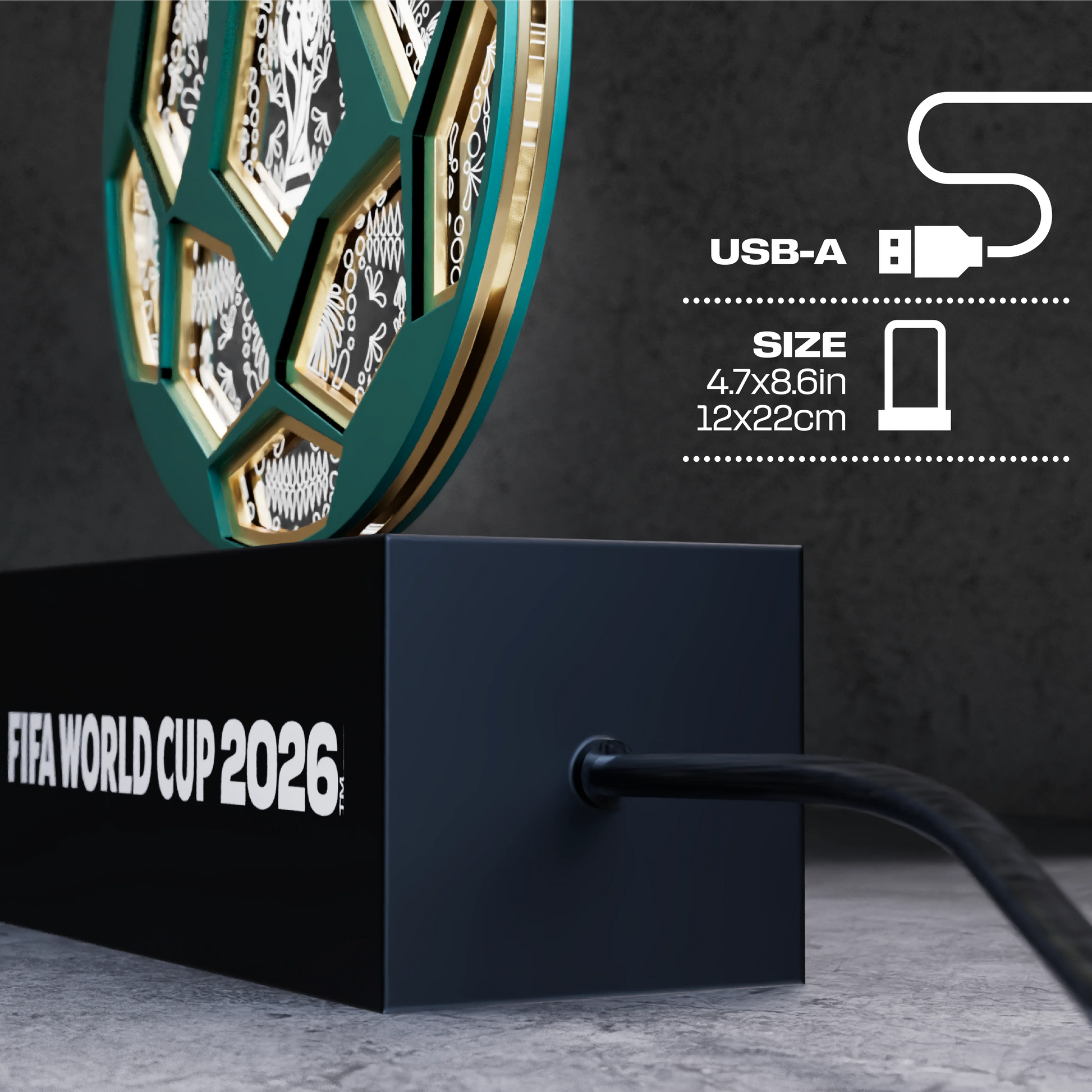 📐 COMPACT & STYLISH: Measuring 4.7" x 8.6" (12cm x 22cm), it fits perfectly on bookshelves, nightstands, or entertainment centers without taking up too much space. The sleek black base features the official FIFA World Cup 2026™ logo.
