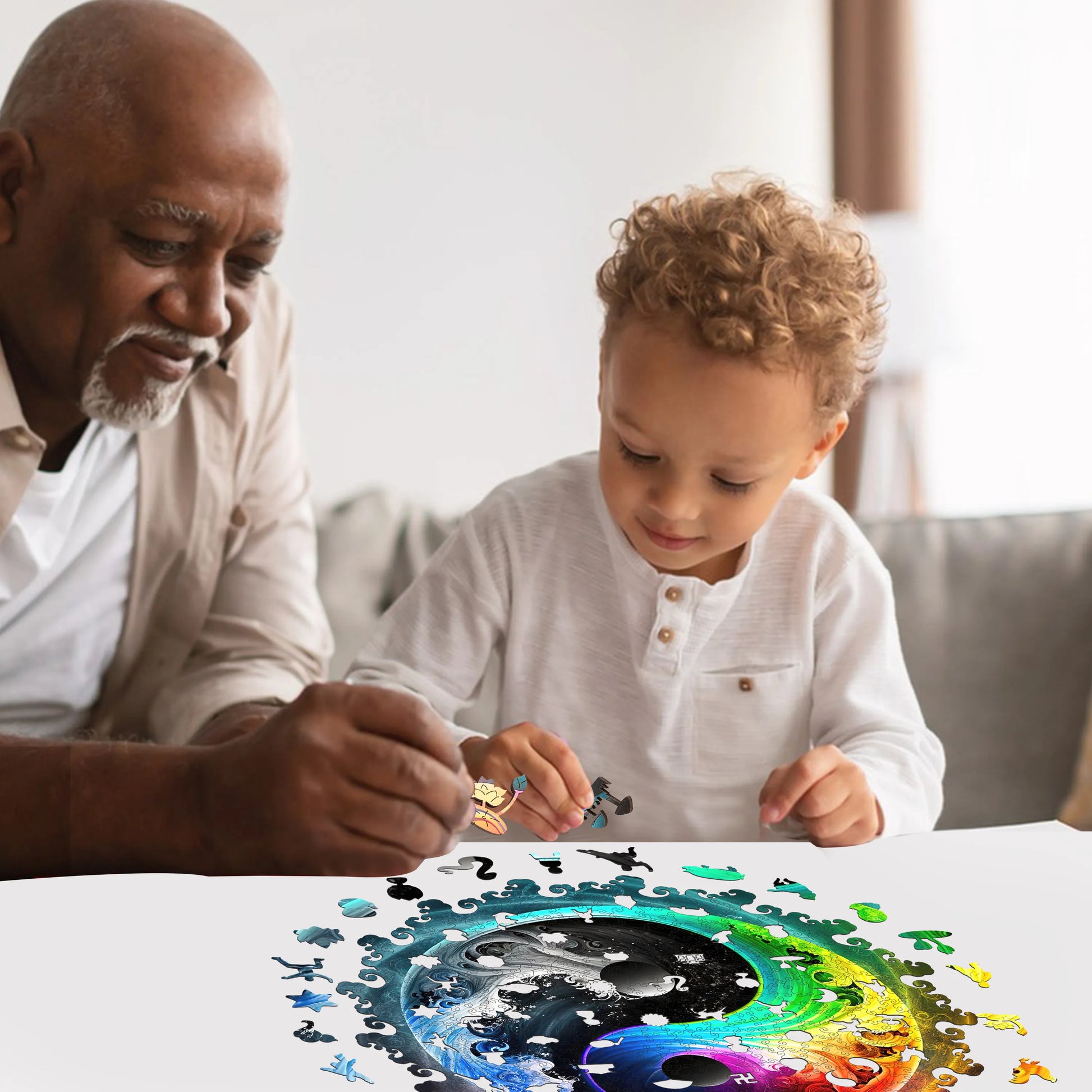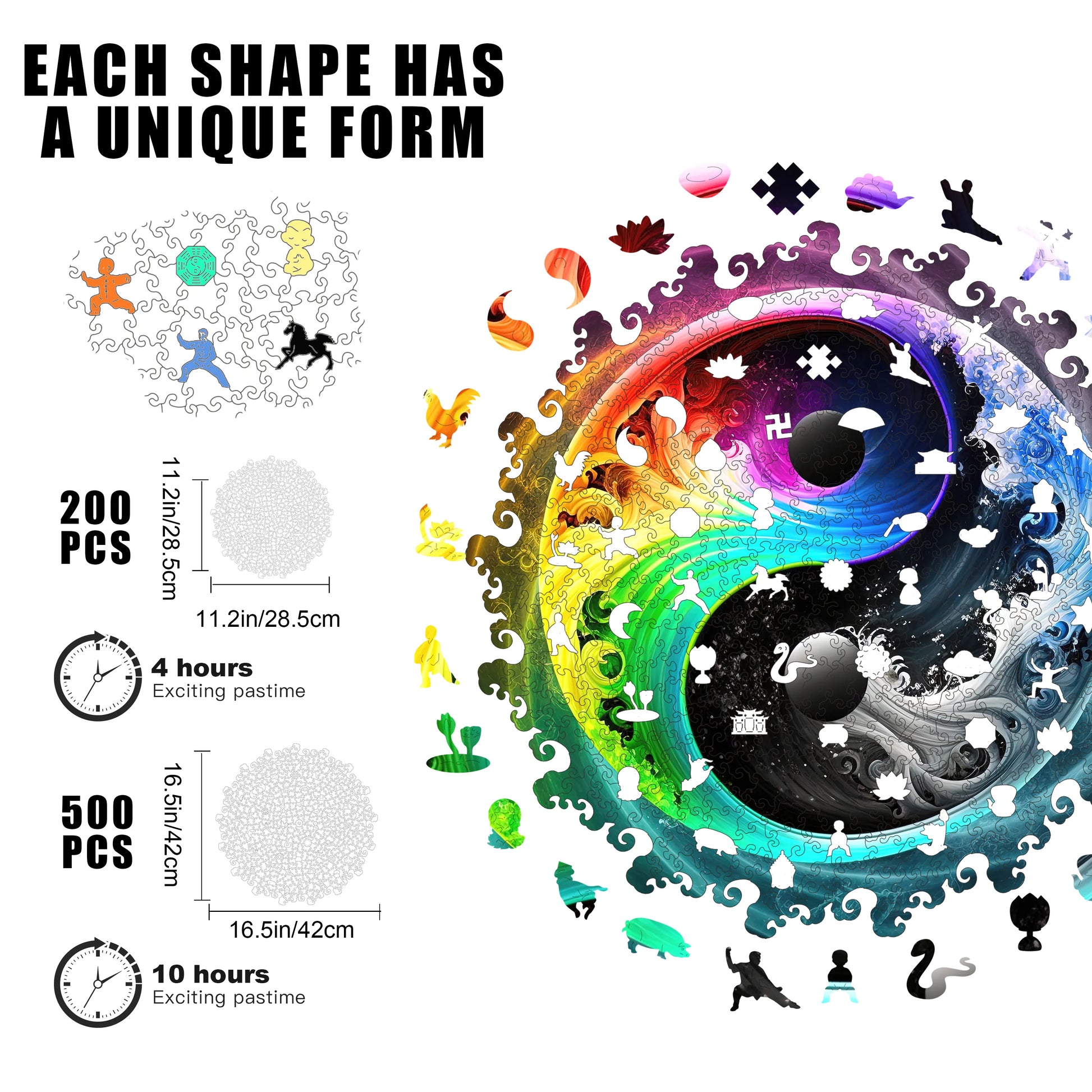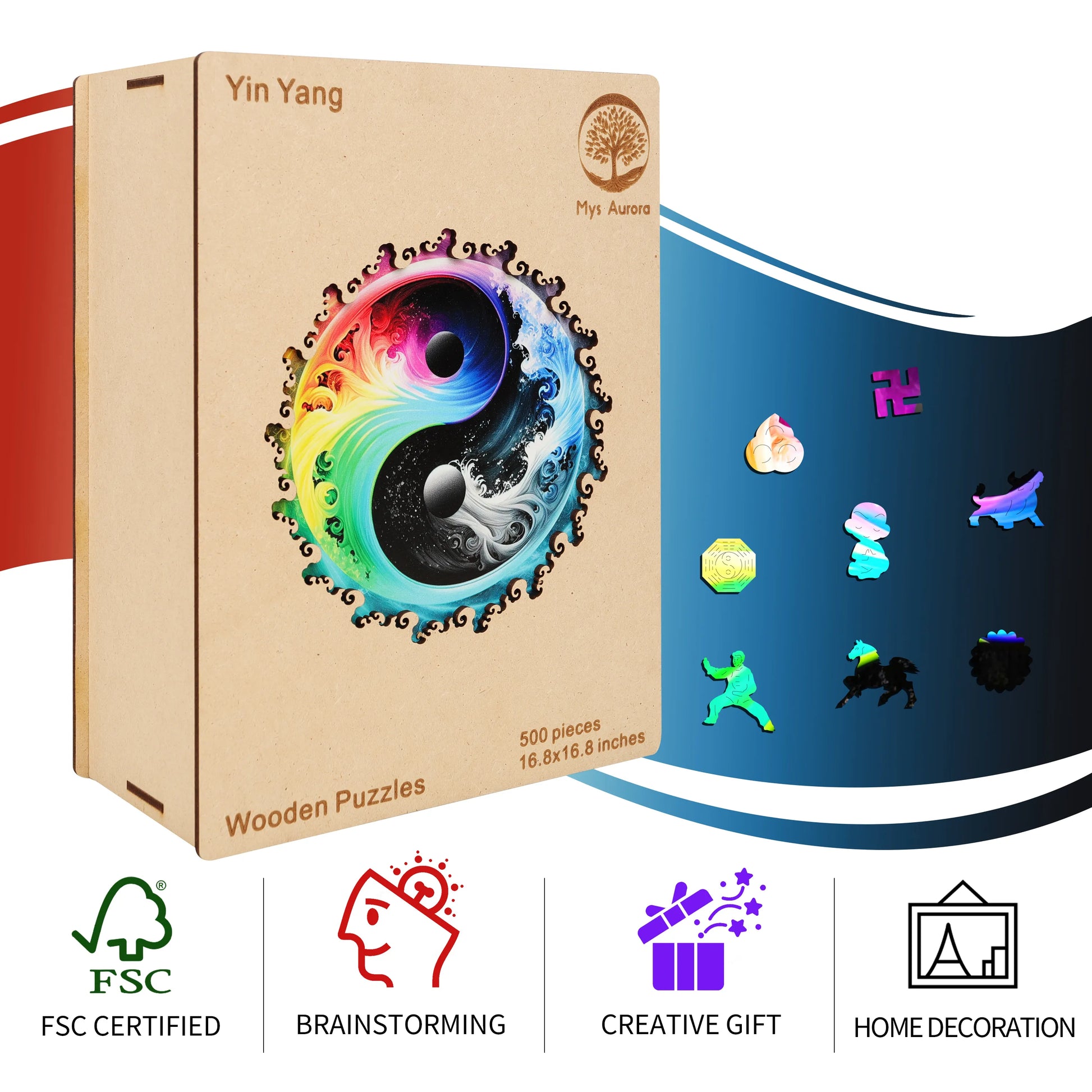 The puzzle is inspired by nature, colorful, unique wooden puzzle. Original and vivid hand-painted art, which is fascinating and worthy of being used as an aesthetic home decoration. Mysterious patterns and small pieces of east eggs give you the ultimate puzzle experience.